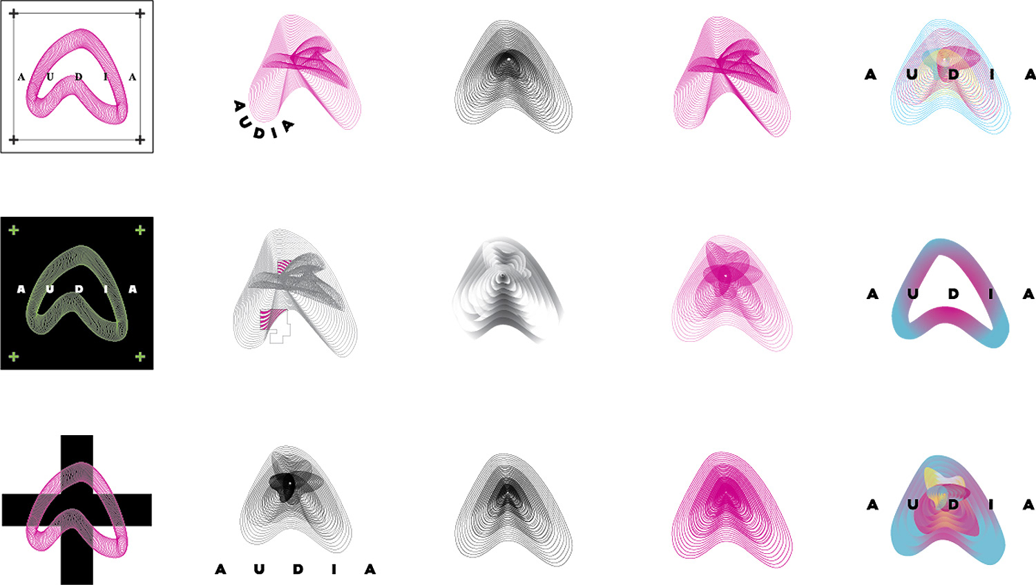 Once I had established the outer bounds of the logo, I began to play with the interior shapes to see how they could convey movement of waveforms. The logo needed to be dynamic while still feeling cohesive and visually harmonious to reflect Audia's commitment to innovation and quality.