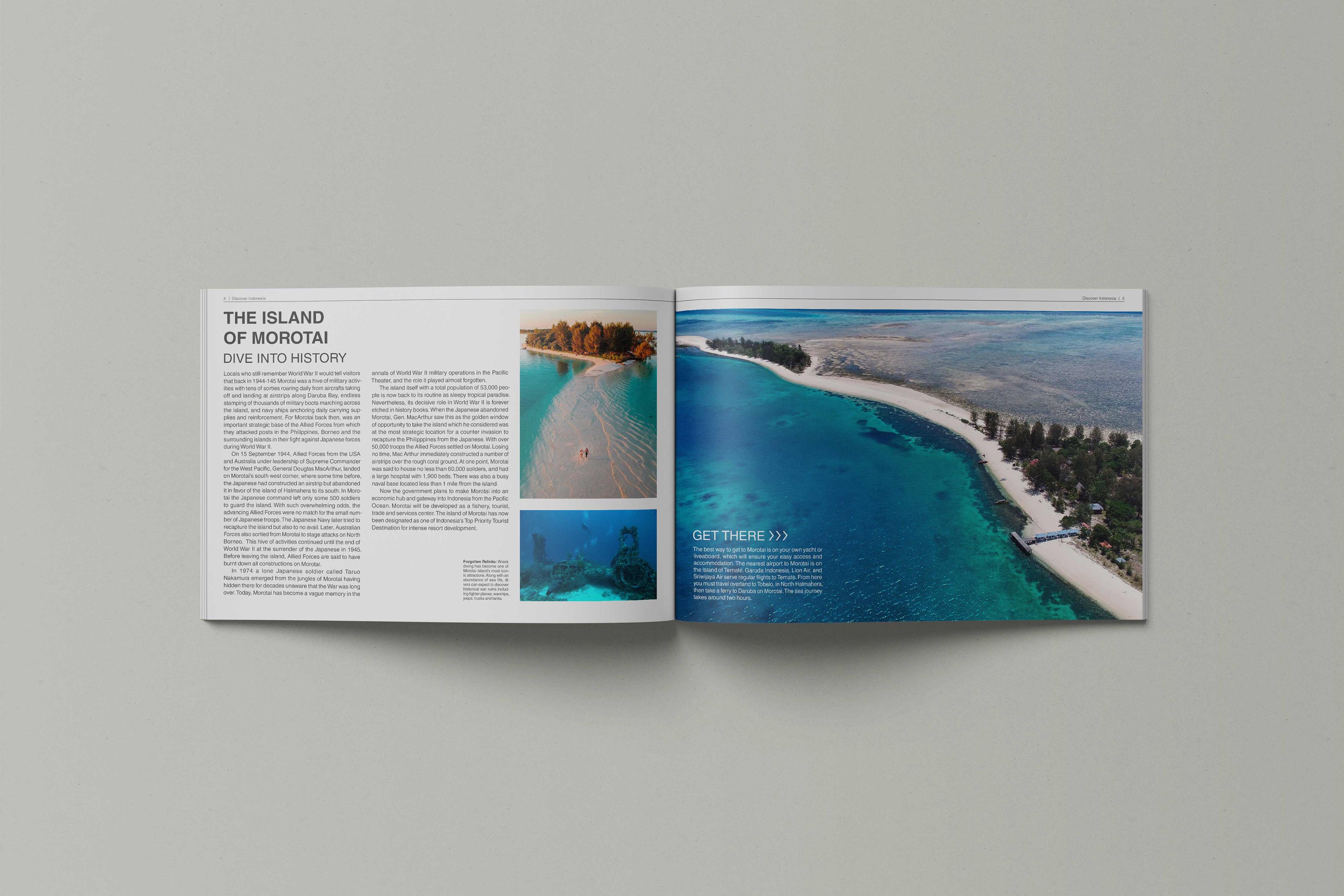 Design a tourist brochure that positions Indonesia as a dynamic and attractive destination for British travelers. The brochure should differentiate itself from typical travel materials through a refined, modernist design approach.
