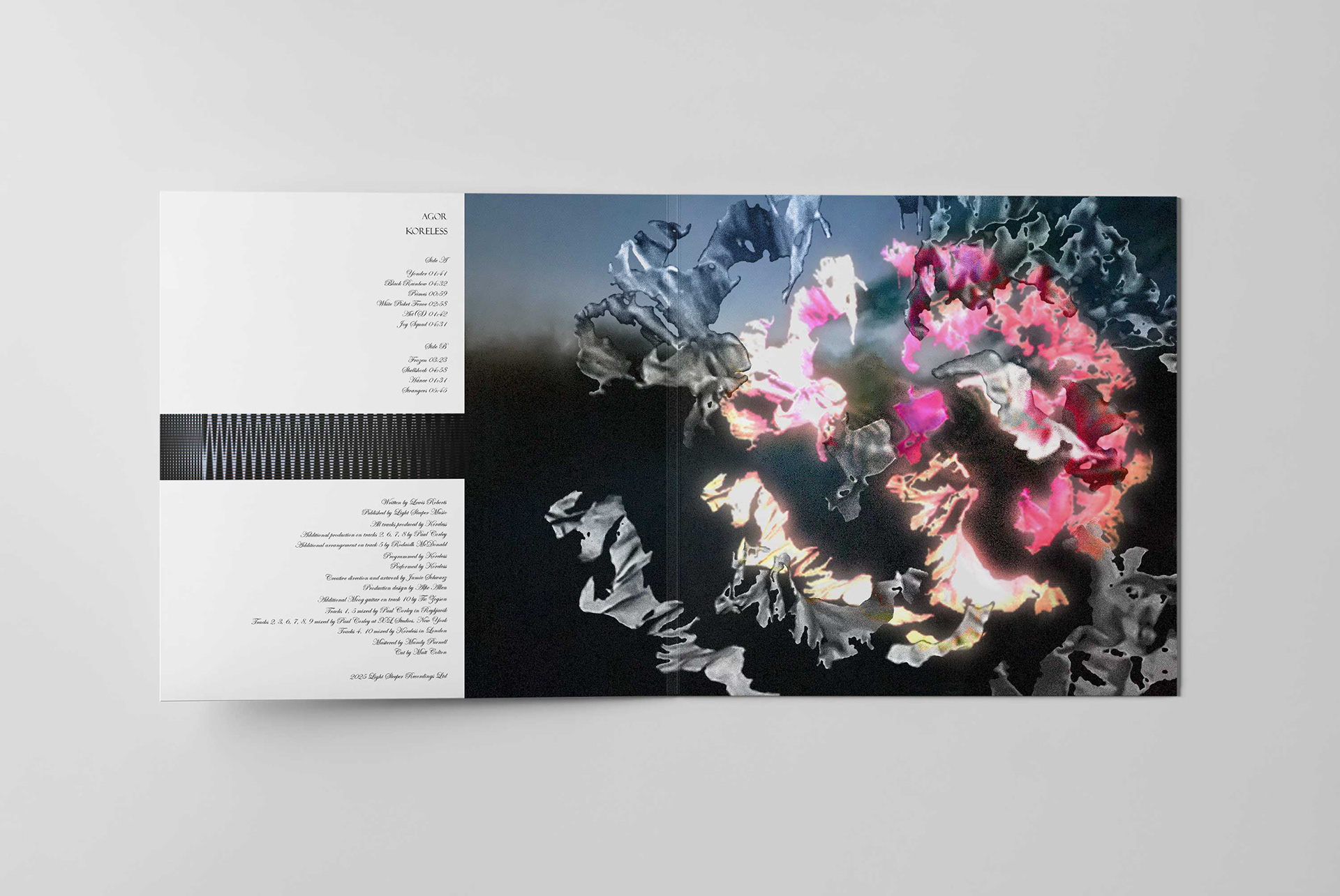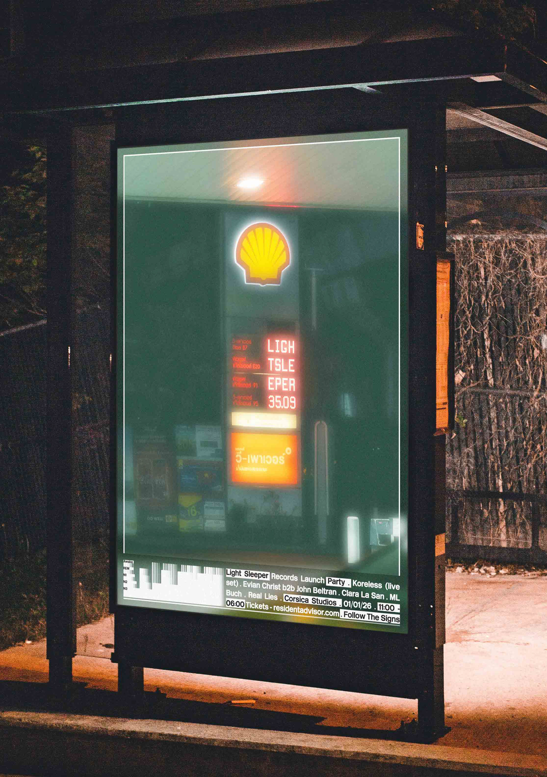 With the evocative name Light Sleeper inspired by music that accompanies the early hours; from half-heard pirate radio mixes in the back of a 4AM cab, to songs you reach for when insomnia sets in, Ben and Sam sought brand visuals to match. Deliverables included a pair of posters promoting the label's launch party, along with album artwork and related promotional materials for one of their first releases, Agor by Koreless.